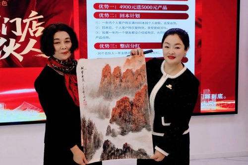 陈霞基金会秘书长、中华诗词学会会员、江苏省美术家协会会员、山水画家许婕,以笔墨寄寓家国情怀,为“华颜天色”苏州运营中心精心创作山水画,寓意国货遍染山河、事业红红火火,为品牌扎根苏州、辐射长三角注入深厚文化赋能。